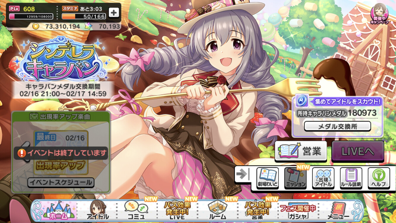 デレステで2022年2月9日〜16日に開催されたシンデレラキャラバンでは担当アイドルである財前時子さまが登場したので無限回収に走っていた。