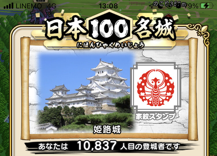 せっかく18きっぷを使っているのでそのまま姫路まで行き、DQウォークの「この城わが旅! 日本100名城®キャンペーン」も消化することにした。